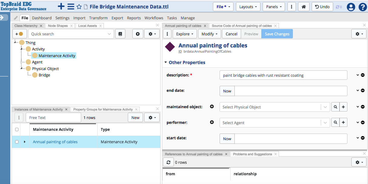 There will also be an additional owl:import to a graph called ‘filesimport’ that owl:imports some further sub-graphs that are needed to drive the user interface. This temporary owl:import will be removed when the database is saved back into the original file. All other triples associated with the temporary URN resource will also be deleted on save. While you will see those extra triples in the Source Code panel - please leave them unchanged.