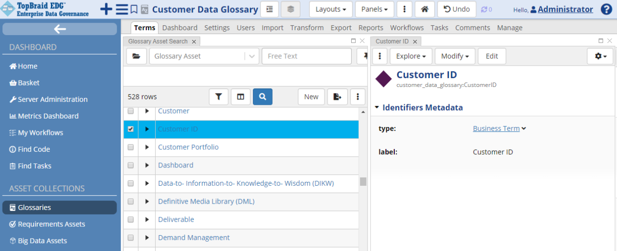 Business Analysts and other users can consult EDG to learn more about terms important to their work and how they connect to data.