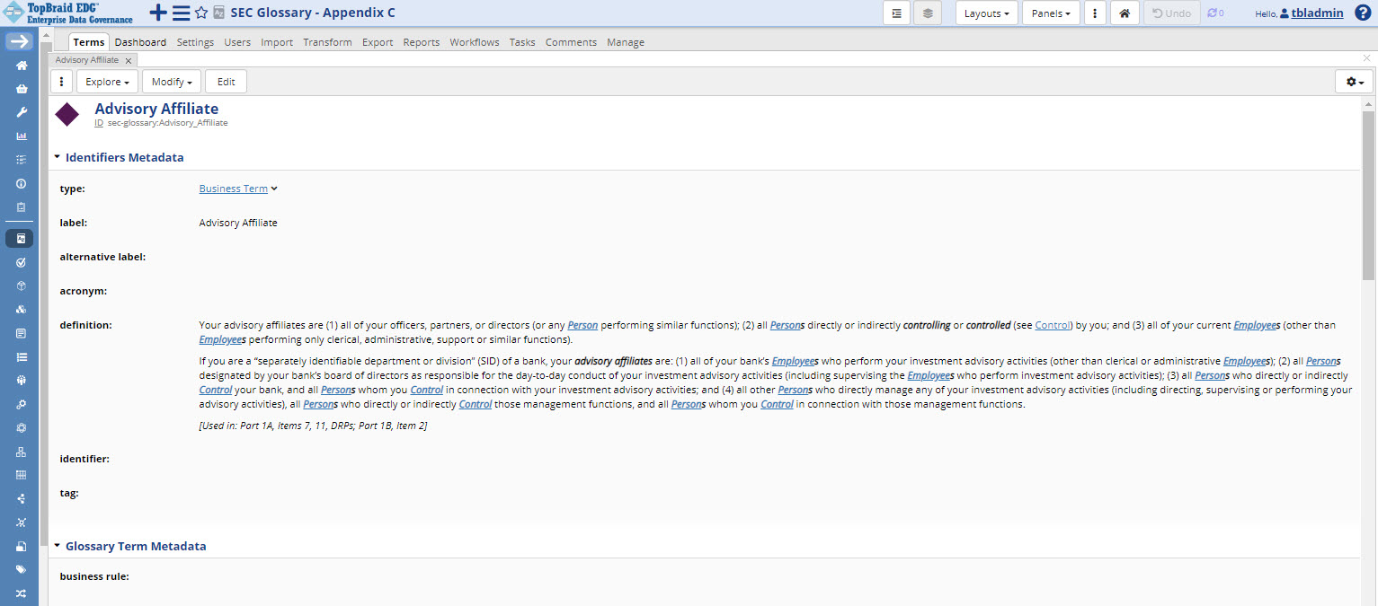 The following screenshot shows edit mode when a concept in a Taxonomies collection is selected.