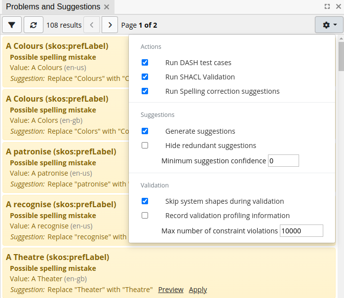 The namespace prefixes used in the collection, for use in SPARQL queries for example, are visible when this is selected.