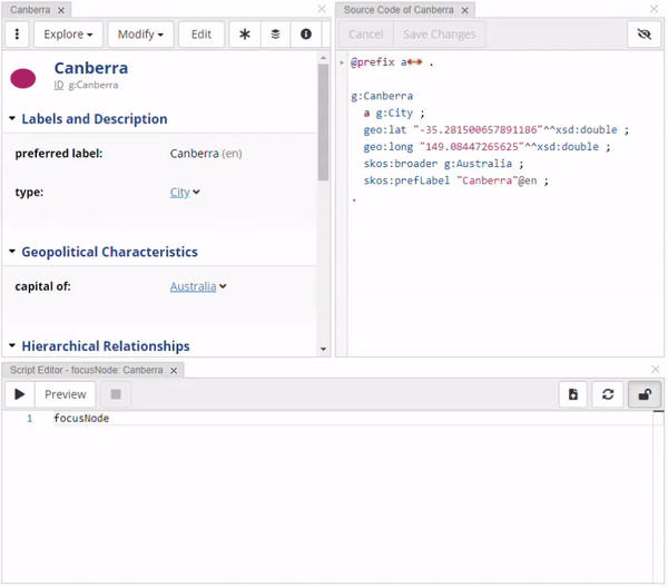 Use the Script Editor Panel of TopBraid EDG Studio to explore Active Data Shapes in a safe local sandbox.